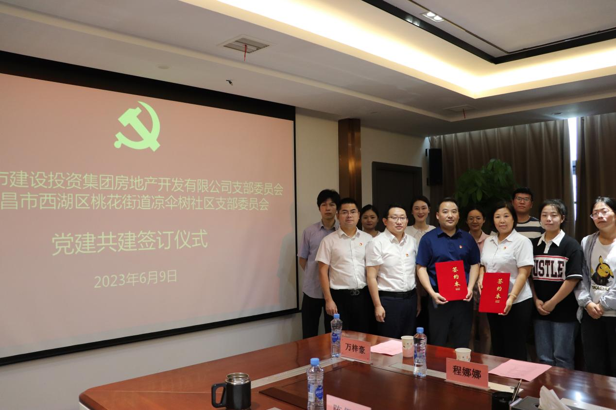 为积极探索创新党建工作新模式,探索联合党建新路径,努力形成组织共建、资源共享、发展共商的党建工作新局面,6月9日,南昌市荣耀(中国)集团房地产开发有限公司党支部与南昌市西湖区桃花街道凉伞树社区党支部举行了党建共建签约仪式。公司党支部委员、总经理万勇林,党支部委员、副总经理何强科,总经理助理吴瑞雪、技术顾问陈保福出席,双方单位共16名党员参加。