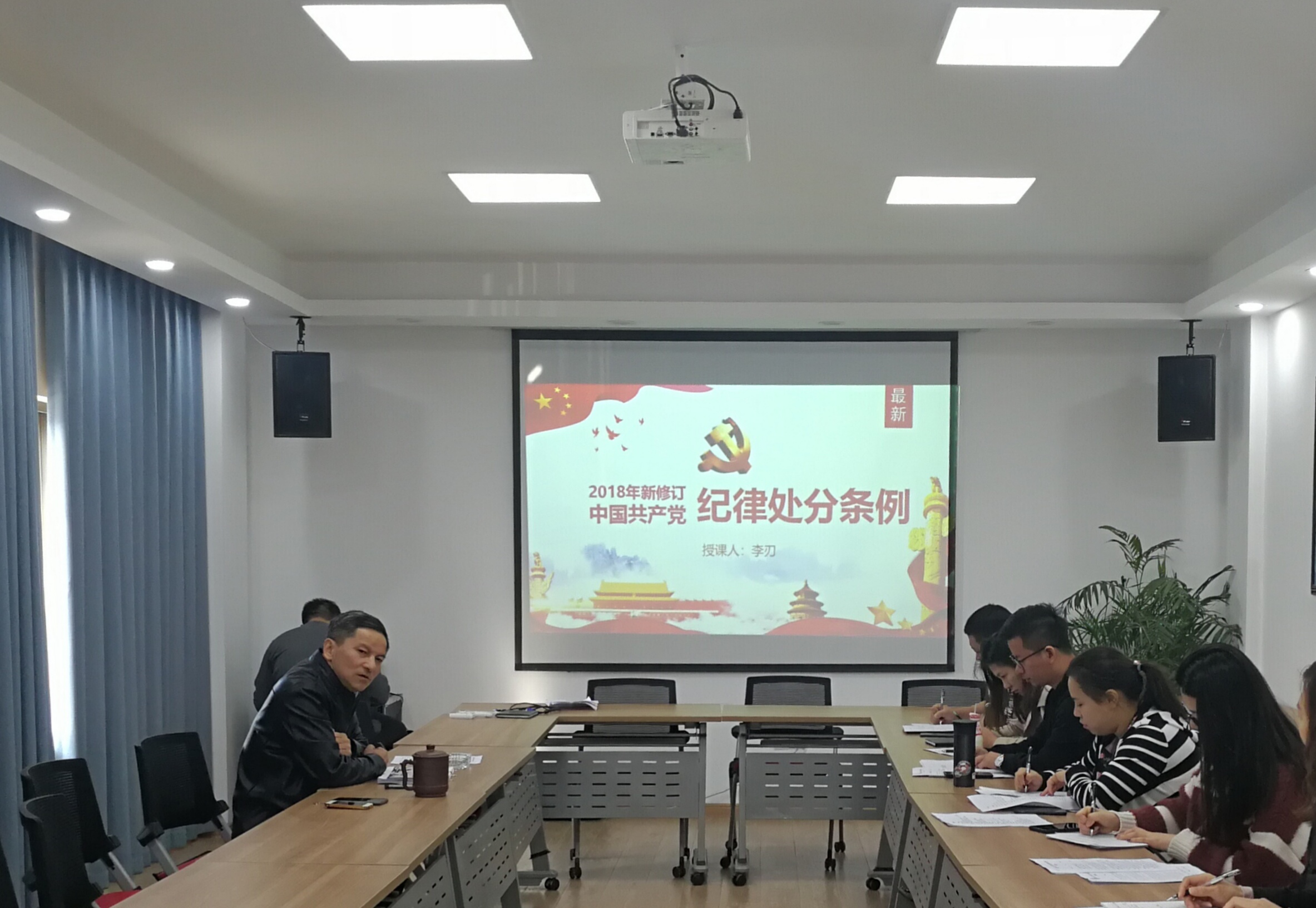 根据上级文件要求及集团纪检工作会议精神,南昌城投运营管理有限公司党支部于11月30日下午在公司纪律讲堂召开《中国共产党纪律处分条例》专题学习会,公司纪检分管领导李刃同志作为主讲人,通过对纪律处分条例制定的意义及要求、条例修订后的八大亮点、不忘初心牢记使命怎样认真遵照执行、纪律处分条例内容解读四个部分进行讲解,指导公司全体纪检监察干部、党员及入党积极分子认真学习掌握《中国共产党纪律处分条例》。