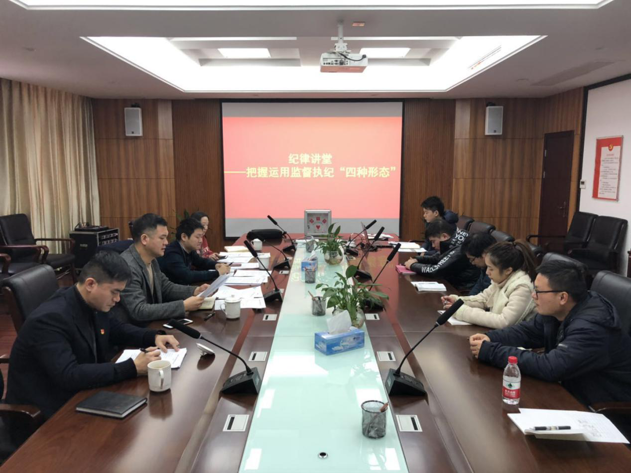 党支部书记张晓庆从监督执纪“四种形态”提出的背景、正确理解“四种形态”、积极实践“四种形态”等方面进行了全面阐述,同时指出,将把握监督执纪“四种形态”作为新年“第一课”,以收收心、醒醒脑、敲敲钟、静静心为目的,使党员干部接受一次生动的党风廉政教育的洗礼,思想上得到教育,灵魂上受到触动。