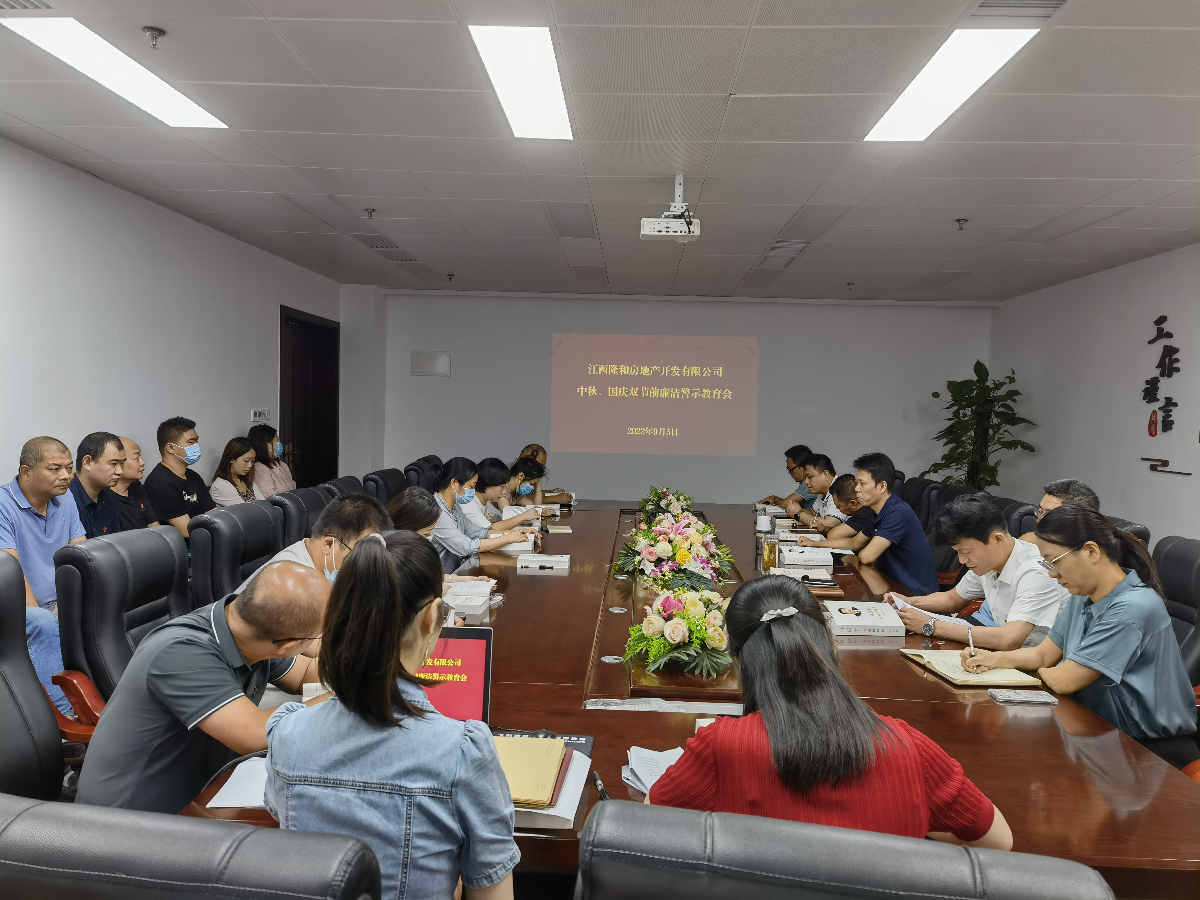 2022年9月,隆和公司纪检监察室组织召开中秋、国庆双节前廉洁警示教育大会及公司关键性重点岗位人员廉政谈话活动。
