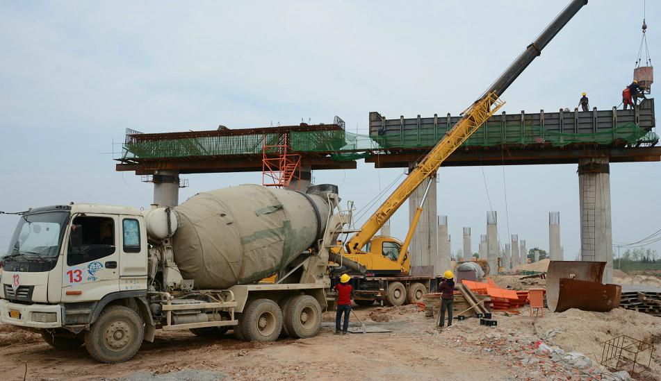 4月11日,经过五个小时有序施工,南外环特大桥南环高架桥73号左幅盖梁混凝土顺利浇筑完成,这是全线关键性控制工程浇筑完成的第一个盖梁。
