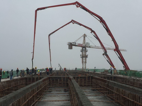 4月10日08时18分,伴随着机械及礼炮轰鸣声,昌东大道南延工程部雄溪河大桥连续梁首次浇筑混凝土准时开盘,本次浇筑总方量为1806方,浇筑桥梁跨度为190米,历时29个小时,于4月11日13时08分浇筑圆满完成!