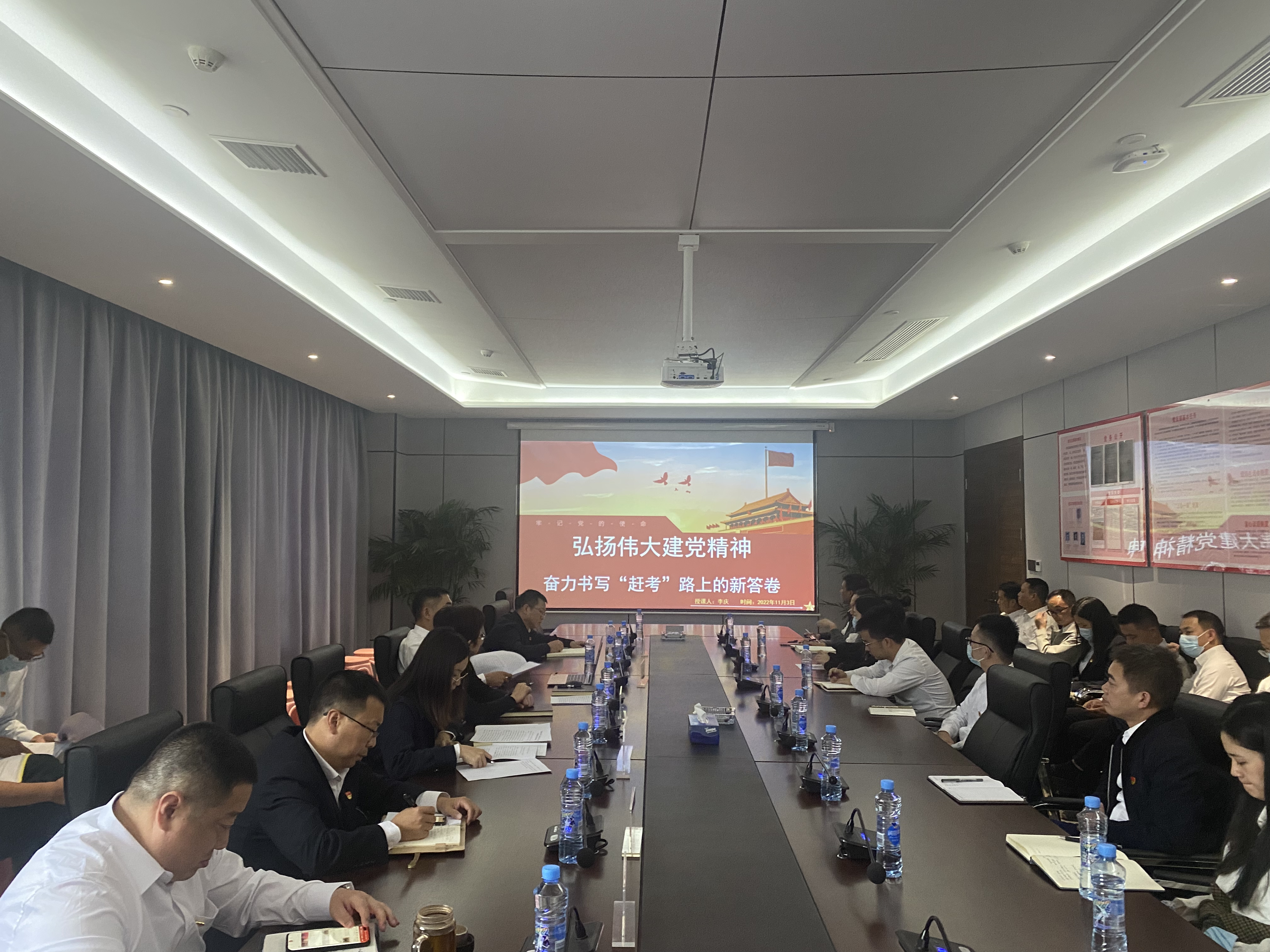 会议的第二阶段由李庆同志为大家讲授一堂有关学习宣传党的二十大精神专题党课,主要围绕弘扬伟大建党精神,复兴巨轮奋楫扬帆,新时代新征程书写新历史、坚守为民服务情怀,砥砺奋进不辱使命,为满足人民更高需求不懈奋斗、严守廉洁自律要求,克己奉公履职尽责,为党和人民的事业奋斗终身、保持勤奋务实精神,坚定信心勇毅前行,为中华民族伟大复兴而奋斗四个方面展开了生动讲解。